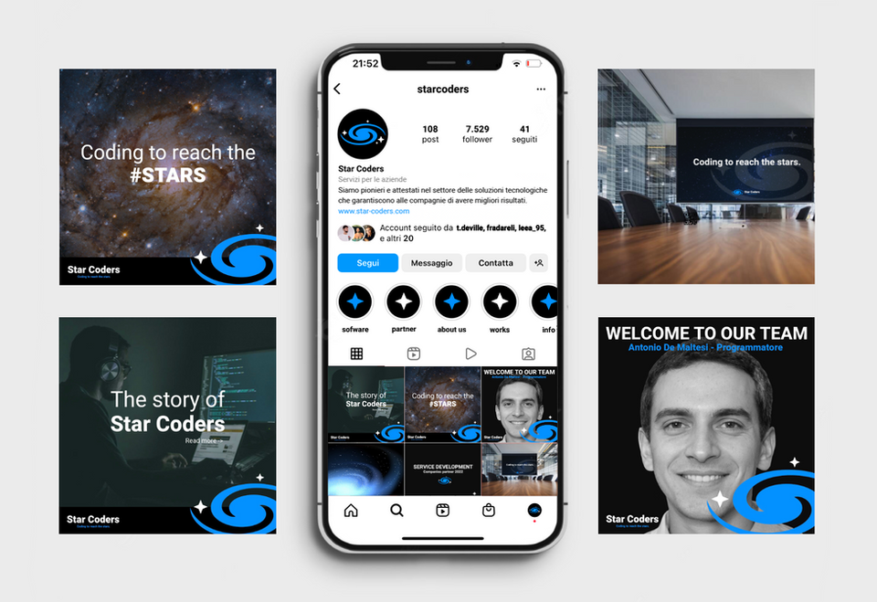 Con il nostro Team di 14 risorse specializzate occupiamo dello sviluppo e della gestione dei nostri Brand-Partner tramite un team specializzato in differenti ambiti: dal logo e brand design alla comunicazione creativa, dal social media management allo sviluppo website con relative campagne sponsorizzate, arrivando a toccare anche servizi operativi come la produzione video-fotografica e servizi più complessi come la "Green Transformation" o la registrazione legale dei marchi.